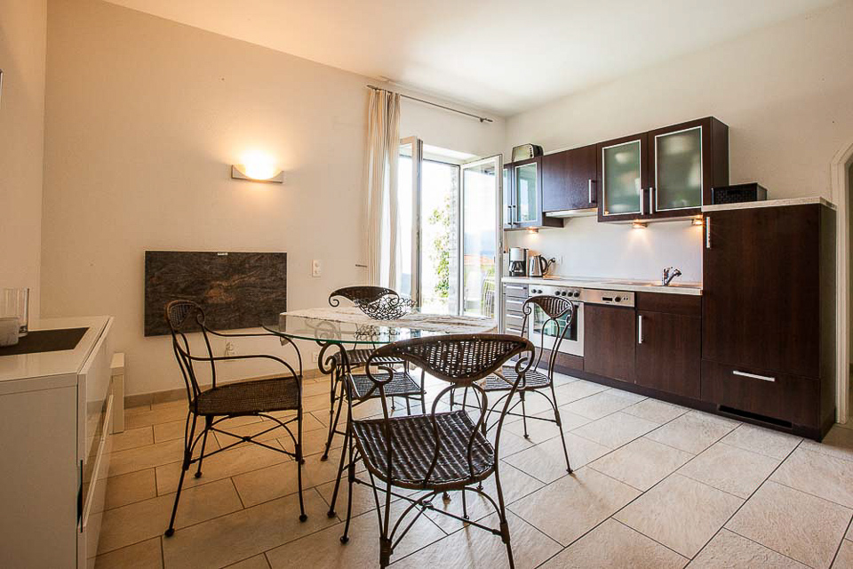 Die 2,5 Ferienwohnung ist über eine schallisolierte Zwischentür mit der Studio Wohnung (max. 2 Pers.) verbunden. Wenn Sie beide Appartments anmieten, können wir diese Tür für Sie öffnen.