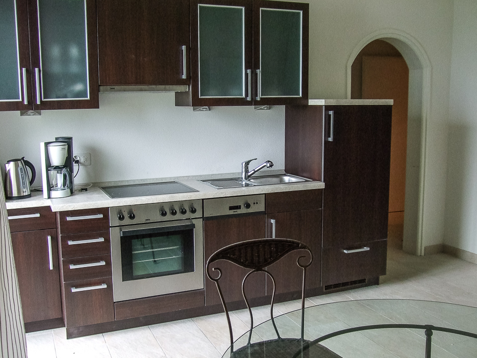 | Ausstattung | Flachbildfernseher (Satellit), kostenloser WLAN-Zugang, moderne Einbauküche mit Geschirrspüler, Cerankochfeld, Kaffeemaschine, Toaster, Backofen und Kühlschrank |